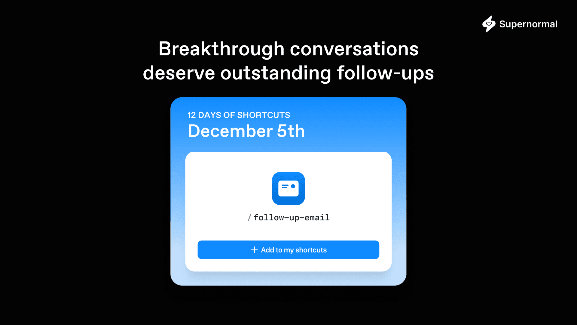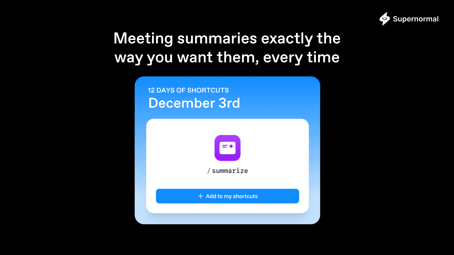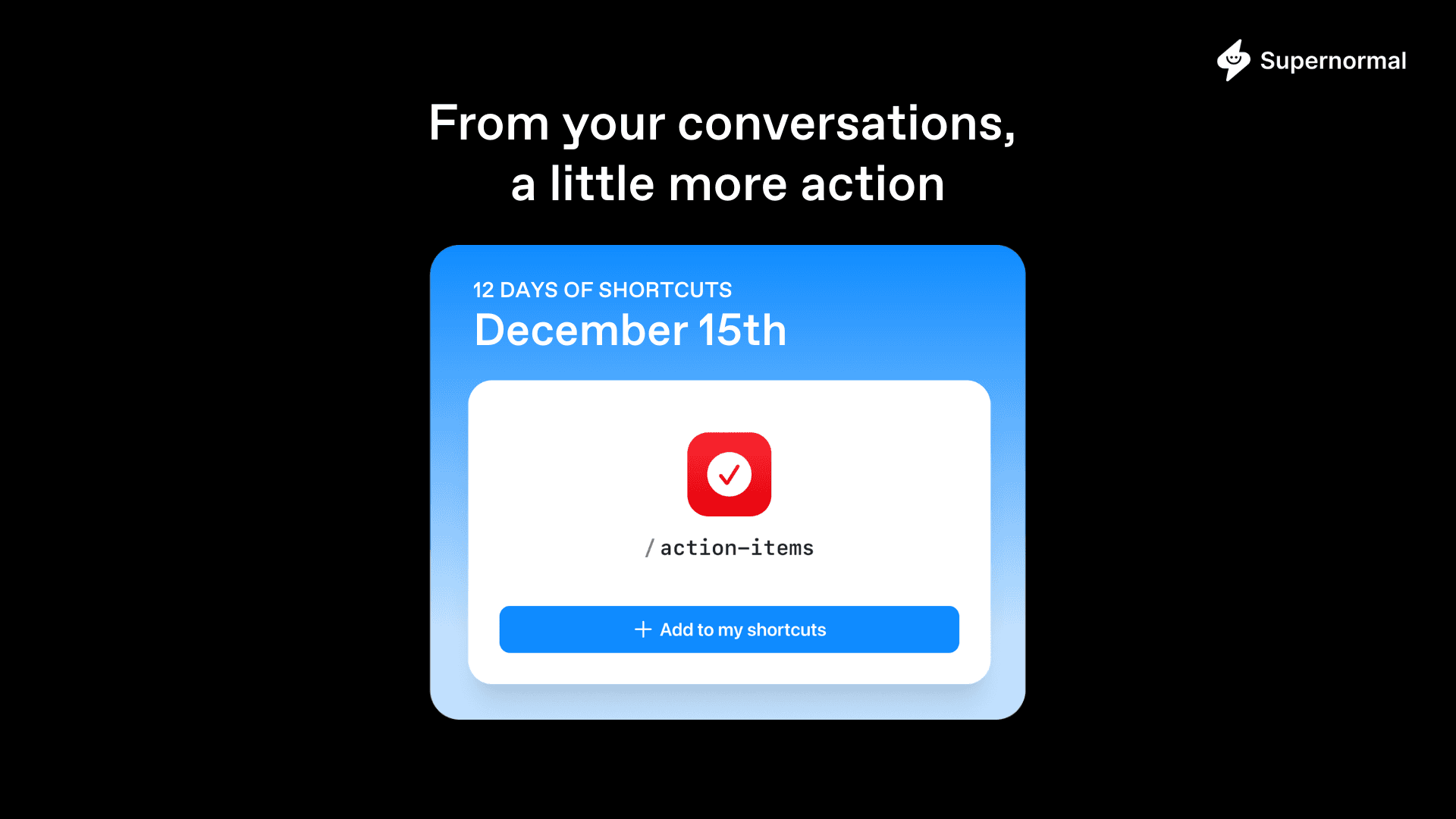 That's the full set from our first 12 Days of Shortcuts. Seeing how quickly people personalized Supernormal has been one of the clearest signs of that the product is growing in popularity rapidly while still in beta. Shortcuts aren't about doing more. They're about removing the drag of repetitive tasks so you can work the way you want.