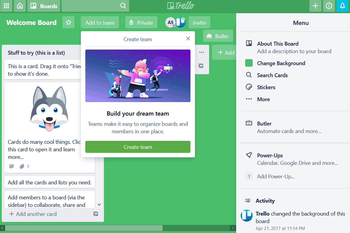 Trello, a project management software, offers a comprehensive product tour where instead of taking you through each feature, it keeps it open for you to examine. It has an example card and menu to clarify what they’re meant for—helping you replicate it easily.