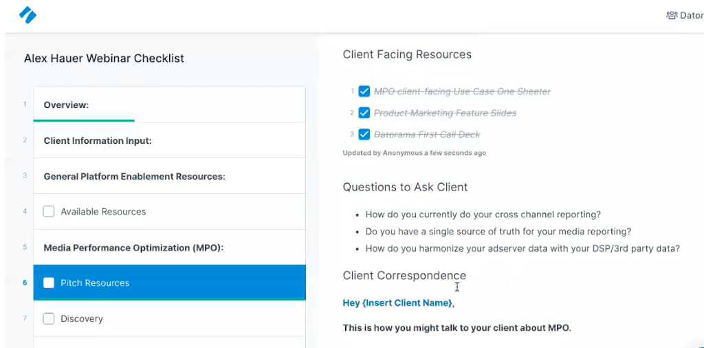 • Conduct a deep dive into the client’s business and goals: While you would’ve conducted a comprehensive sales call to understand their needs, investing the time to document it after purchase is an excellent idea. Now that there's a mutual agreement in place, the customer is more open and honest about their needs and bottlenecks—giving you much-needed insight.
