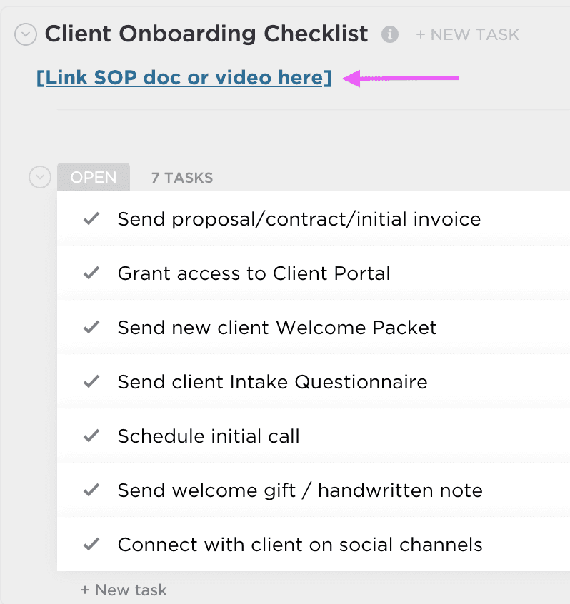 Tip: Create a client onboarding checklist to templatize the process