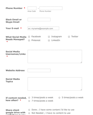 An example of a social media client onboarding questionnaire
