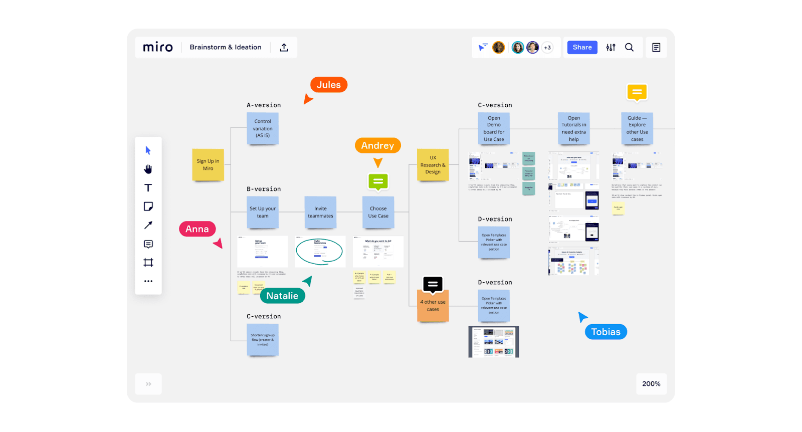 Miro is a powerful visual collaboration platform allowing teamwork in real time, regardless of location. With an infinite canvas, you get a flexible and intuitive interface perfect for brainstorming sessions. The platform enables teams to visualize and organize their ideas while collaborating seamlessly in real-time.