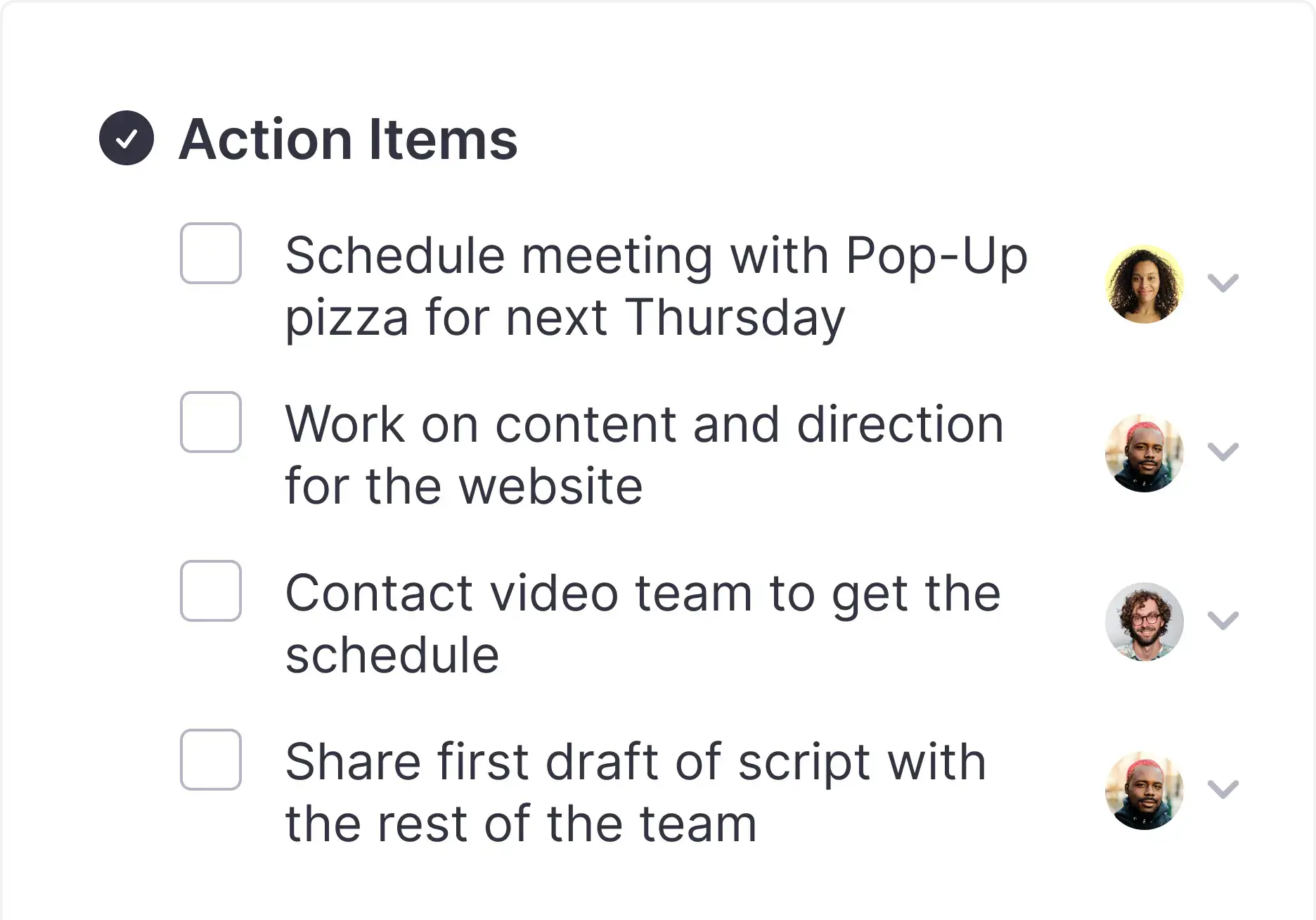 Supernormal automatically creates action items in a meeting and intelligently assigns them to each participant.