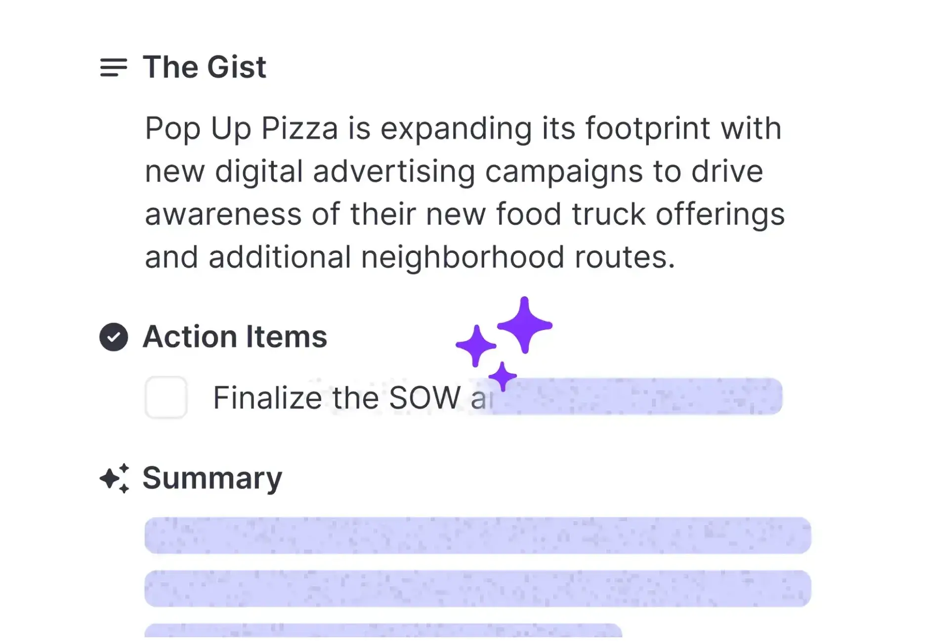 Get clean, structured notes right after your meeting ends, complete with decisions and discussion highlights.