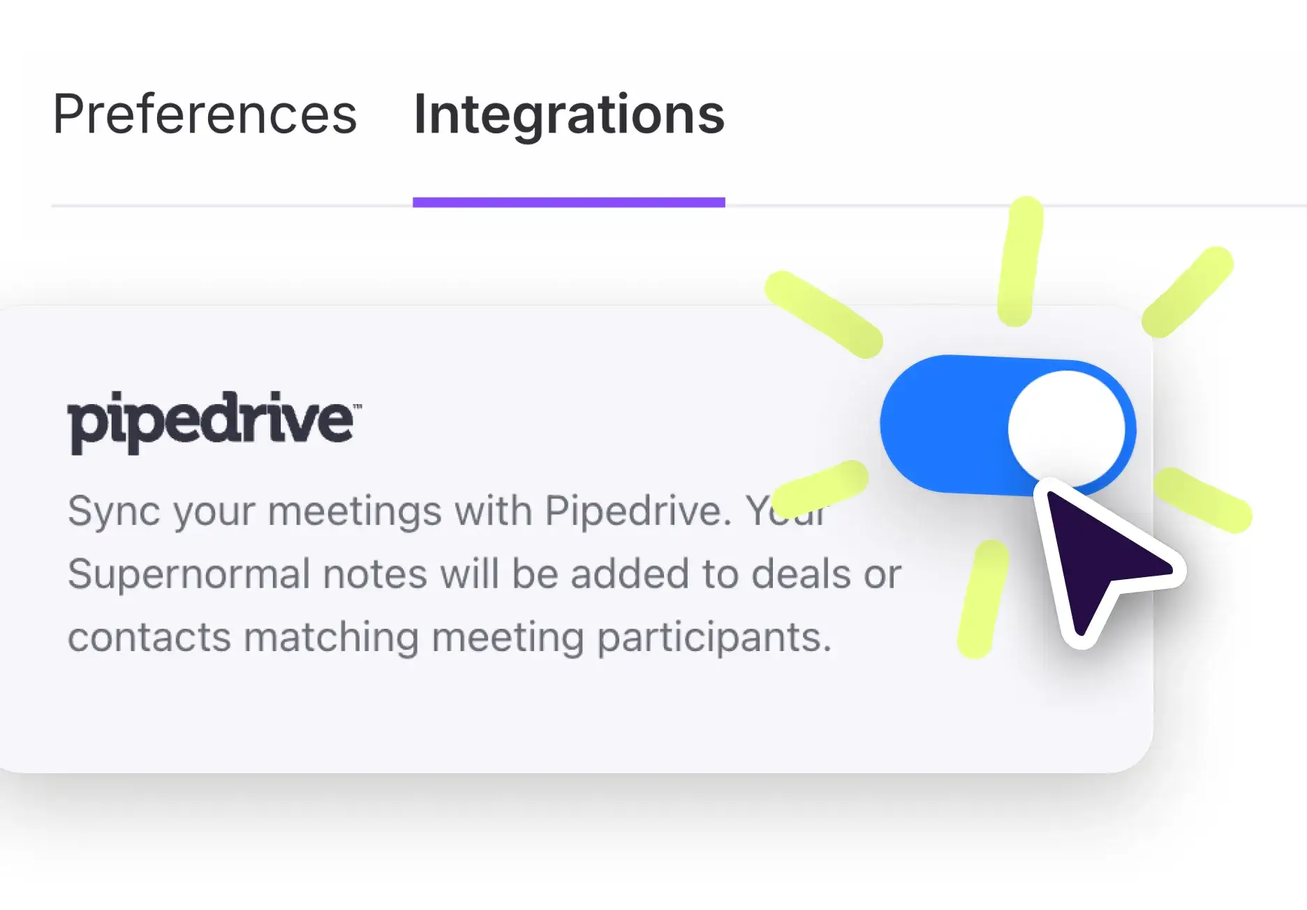 Supernormal connects directly to Pipedrive so your meeting content is automatically linked to the right deals and contacts.