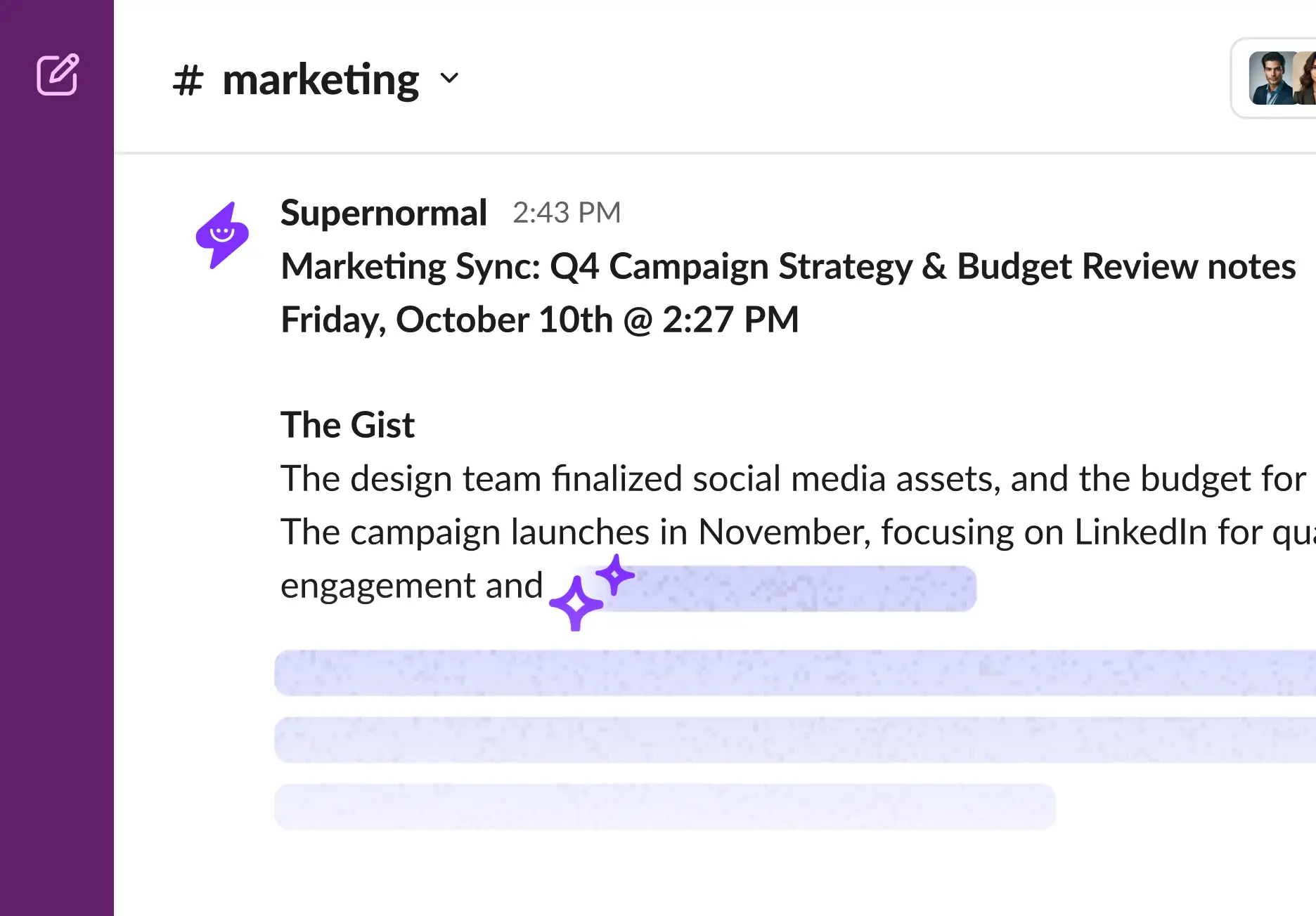 Keep teams aligned. Supernormal updates Slack.