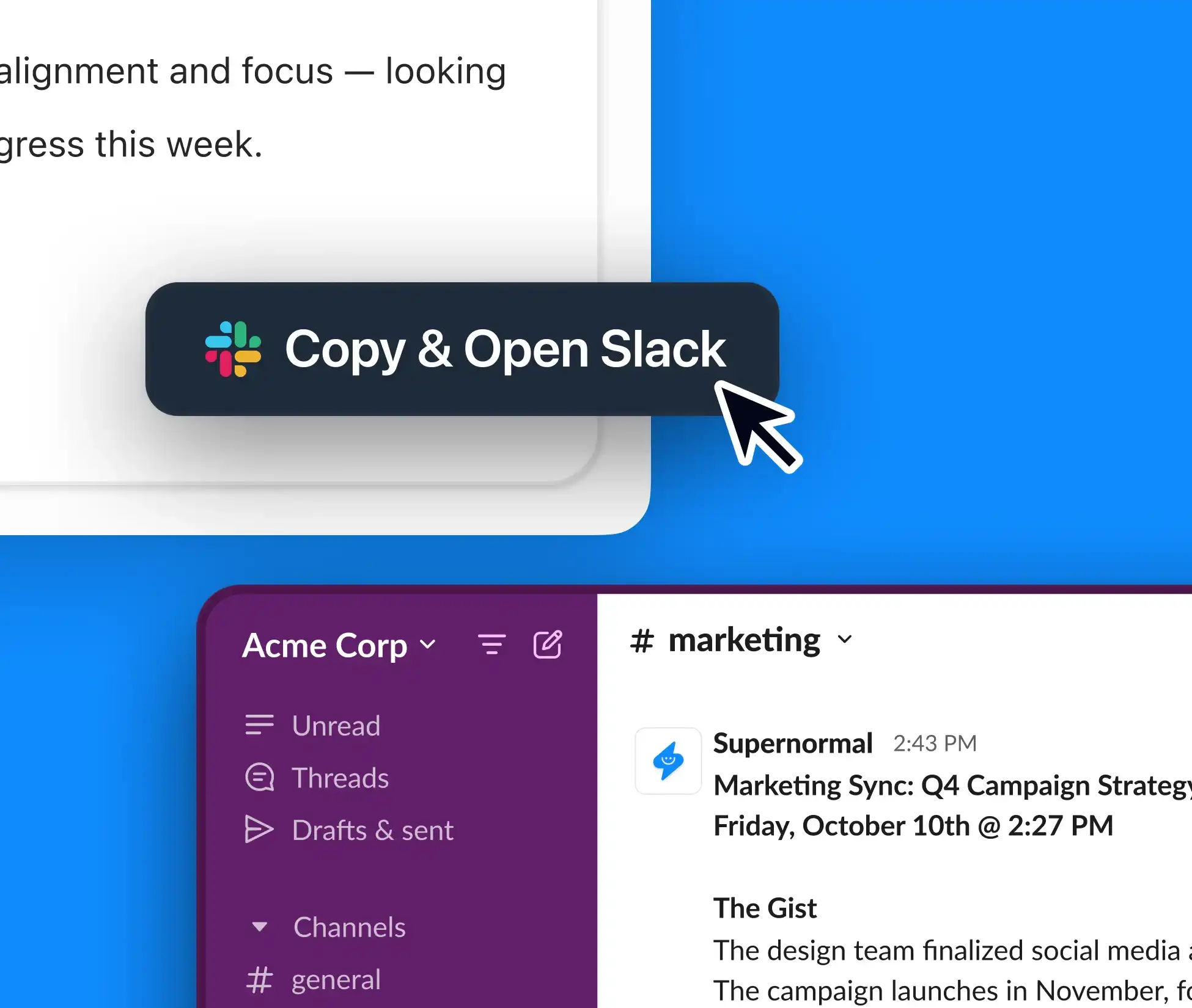 Chat with Supernormal to adjust message drafts before posting to Slack. Add details, change tone, or refine formatting.