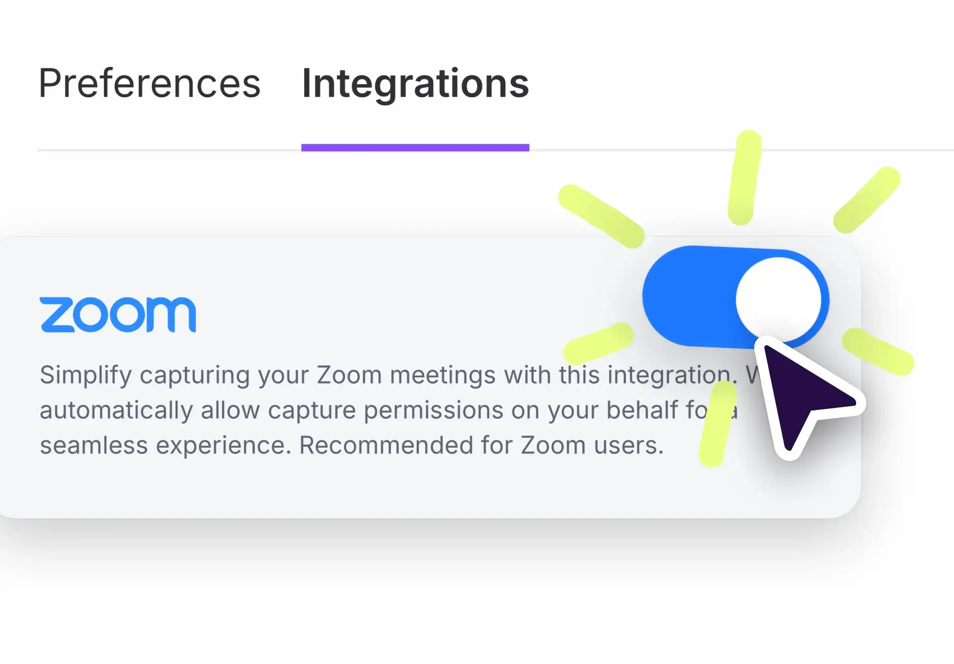 Connects to your Zoom account to securely record and process meetings, ensuring accurate, dependable notes and transcripts every time.