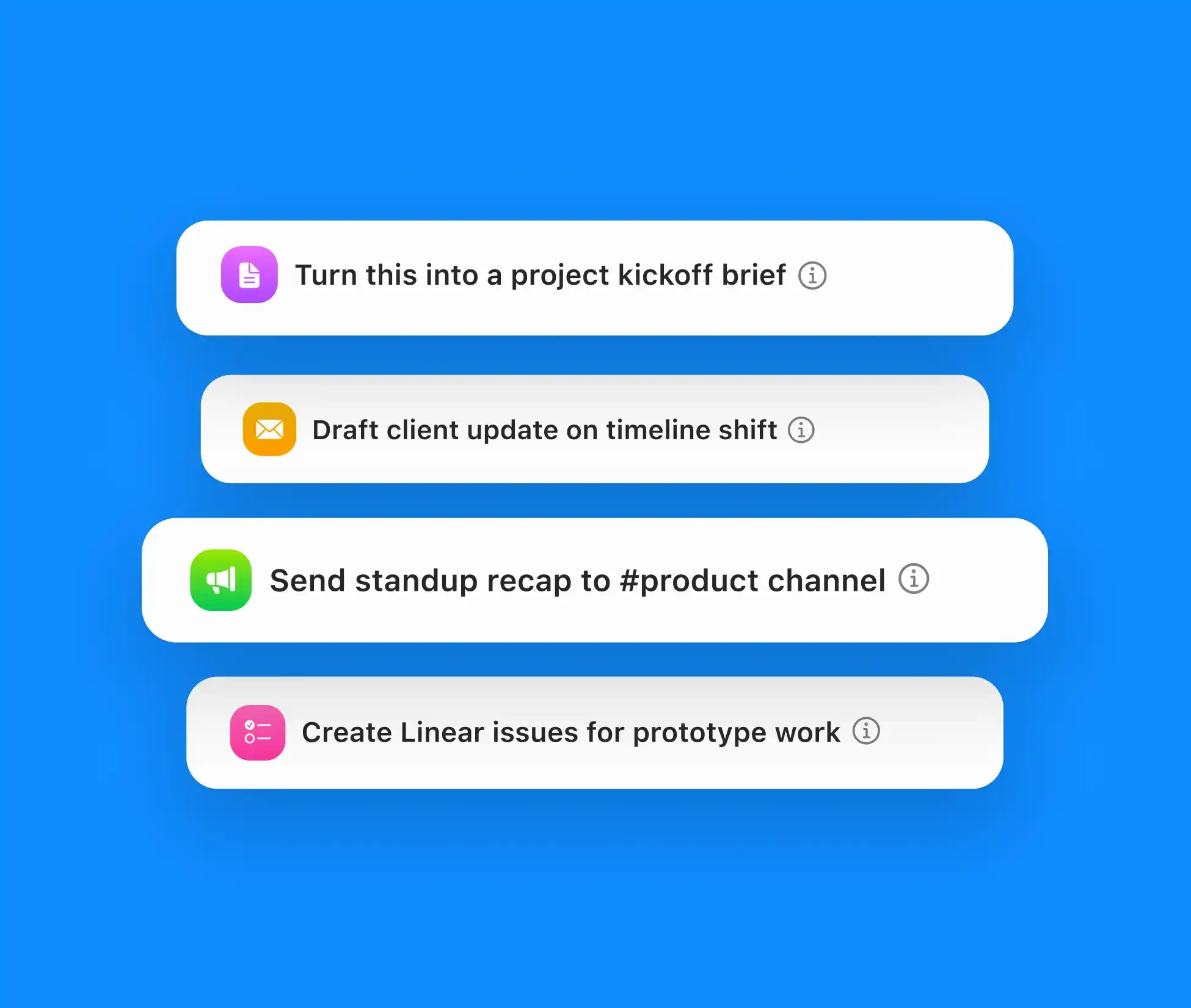 Create email follow-ups, project plans, tickets, and updates from your meeting discussions. Move from conversation to execution without manual work.