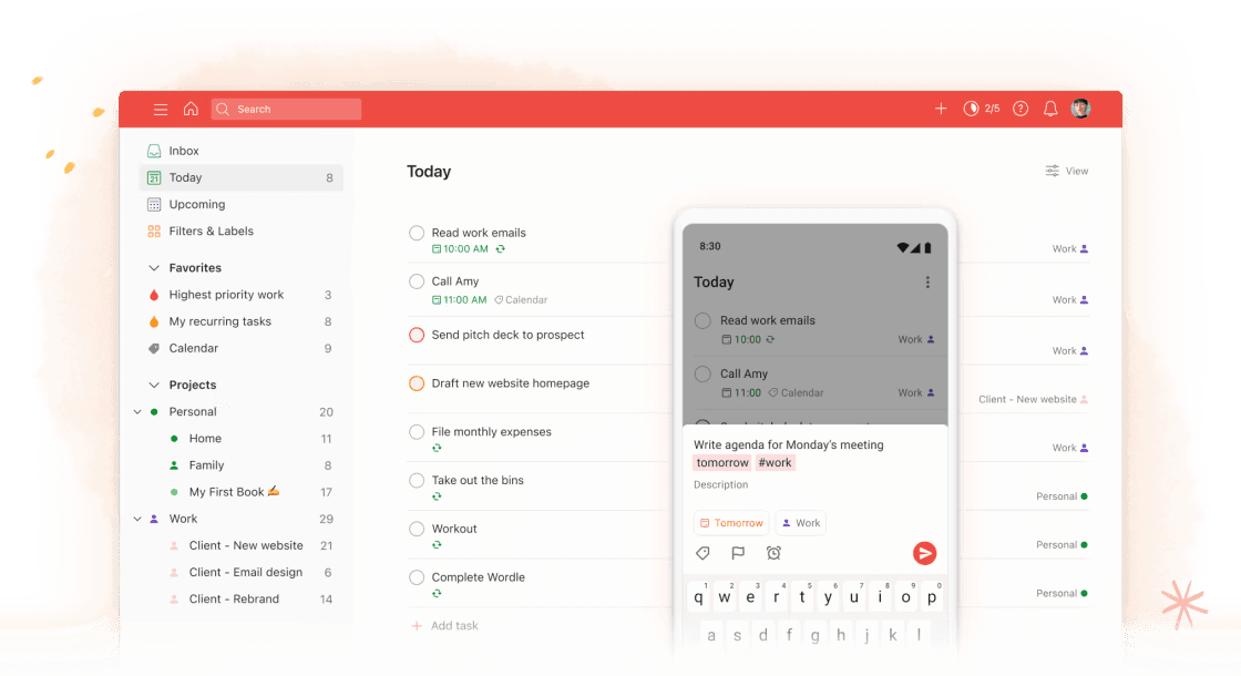 Todoist é uma ferramenta de gerenciamento de tarefas que pode priorizar e gerenciar cargas de trabalho, tornando mais fácil estar em dia com as obrigações.