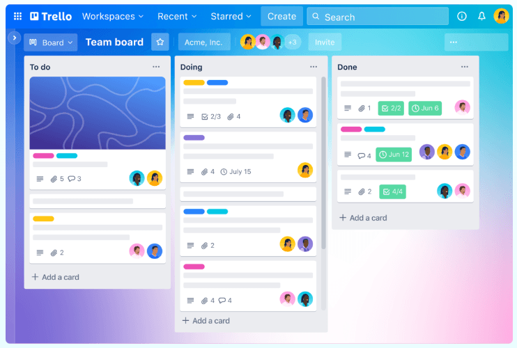 Organize tarefas e projetos em quadros e listas personalizáveis