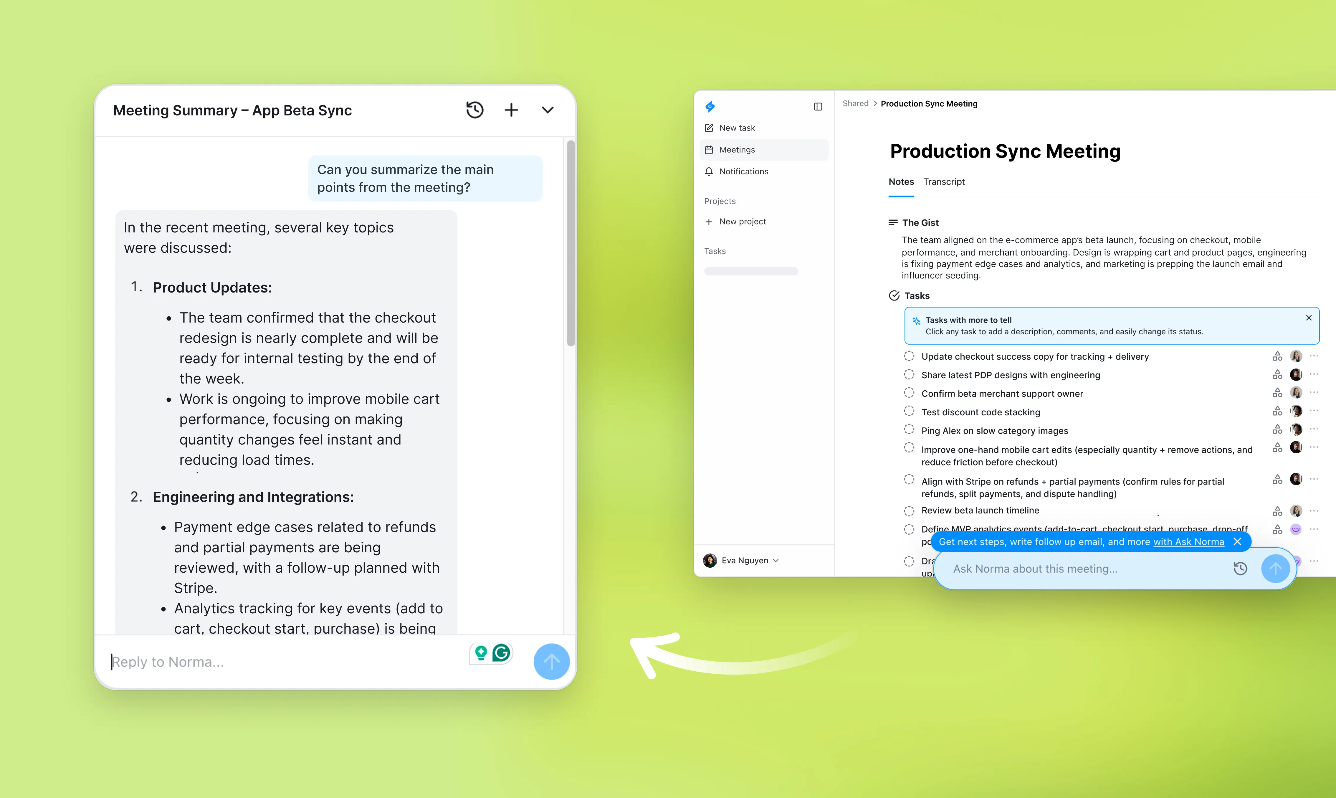 Generic AI makes you start from scratch every time. Supernormal keeps your meetings, emails, and client context on file. So when you ask for a follow-up email or project brief, it already knows what happened and what matters.