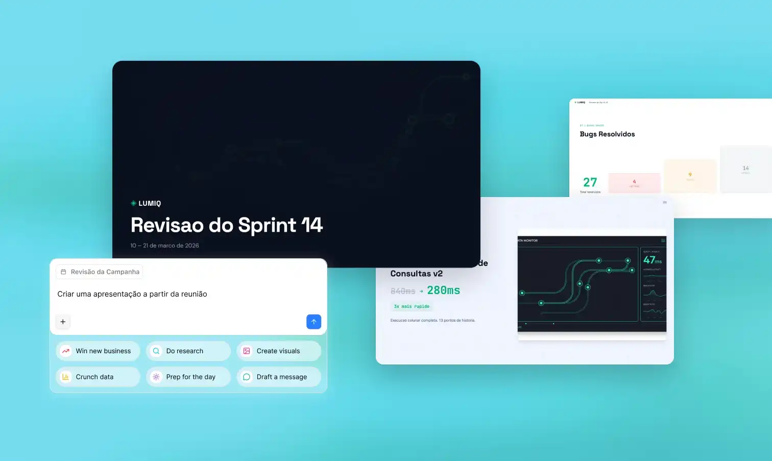 Board decks, investor updates, and quarterly reports built from meeting discussions, emails, and documents. Professional materials with minimal manual work.